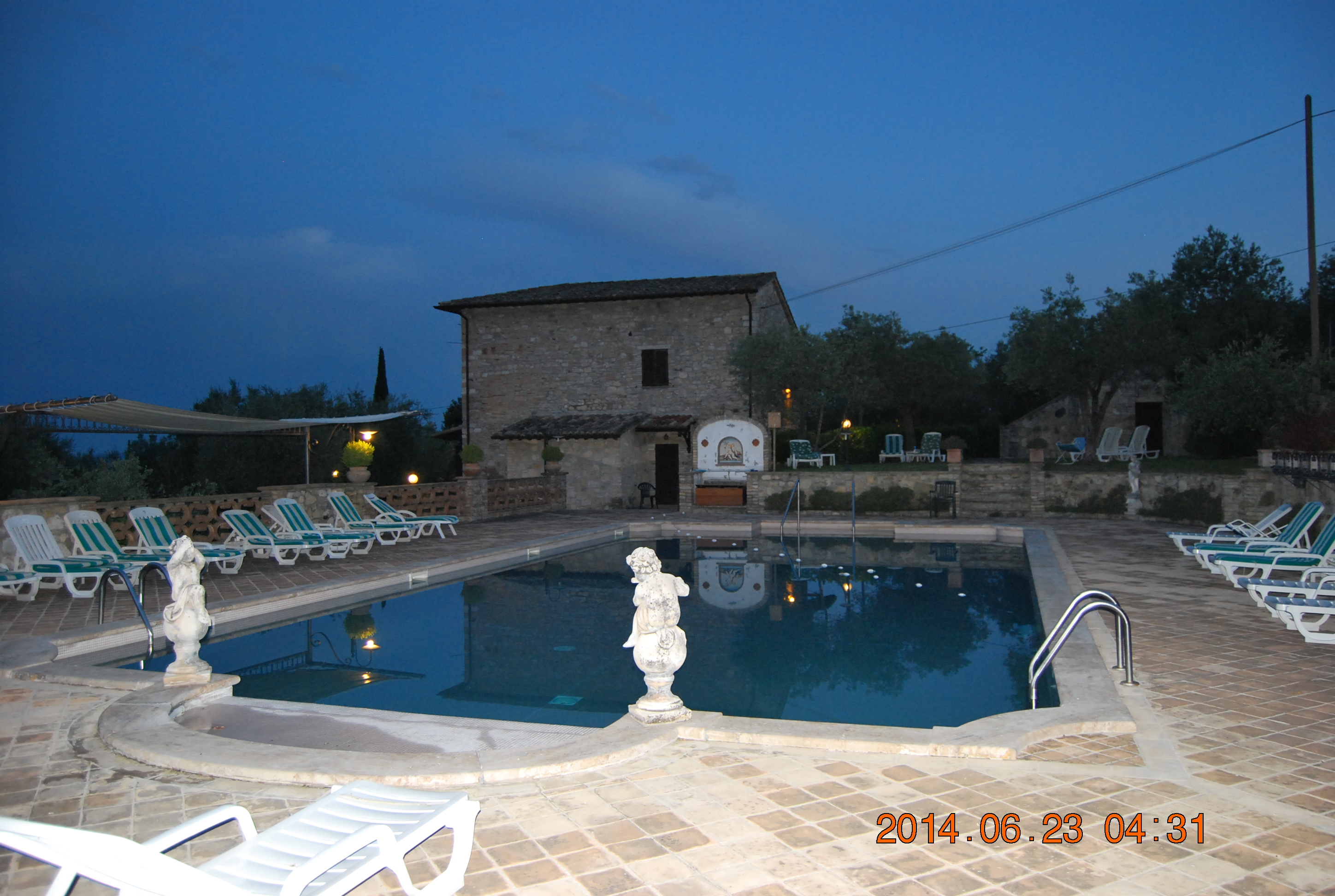 Vel hjemme på Antico Podere tok vi et bad i bassenget og fikk avkjølt oss etter en god og varm dag. Vi la oss ved midnatt til atter en god natts søvn i trulloen.