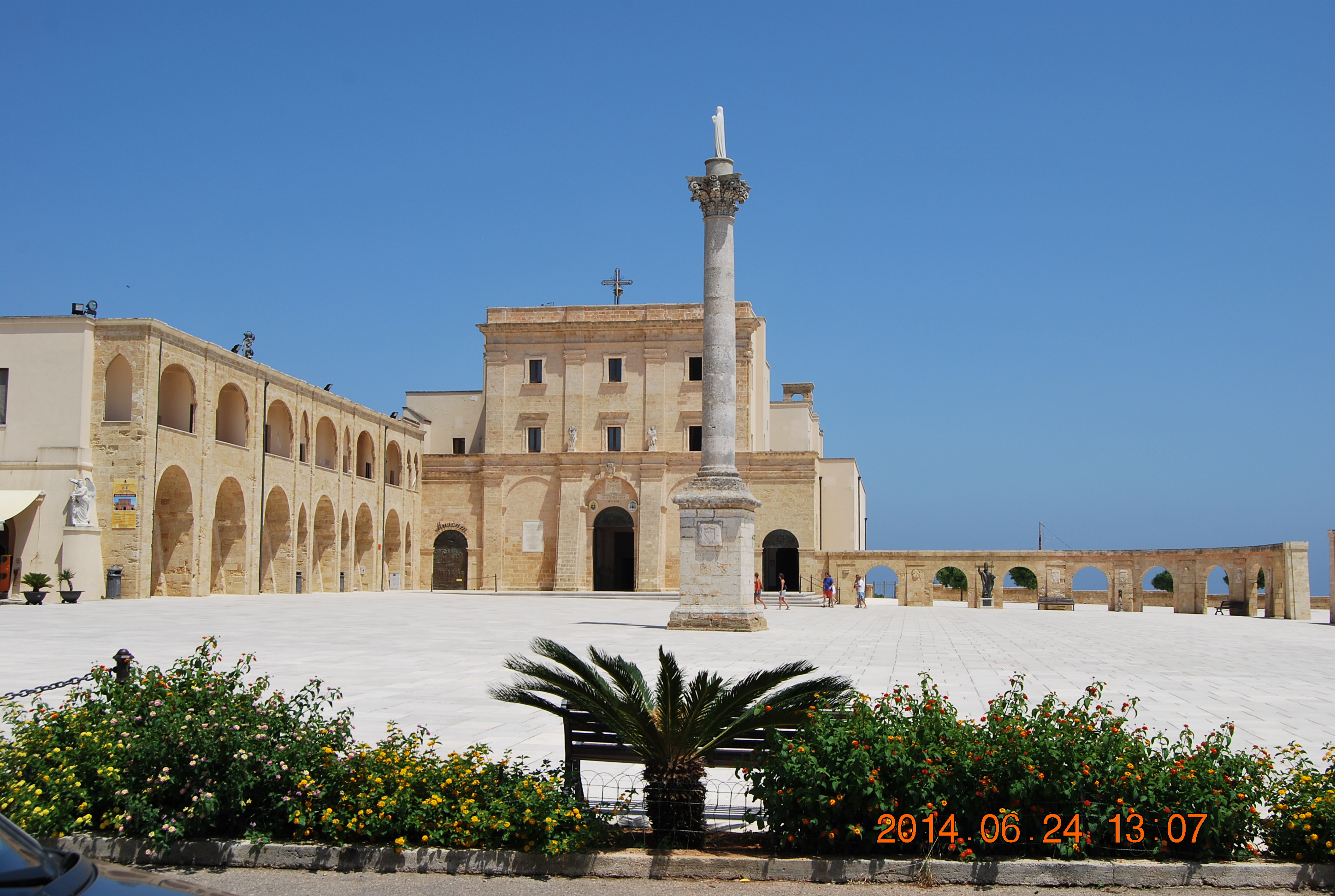Vi fulgte veien ufortrødent videre til Nardò, hvor vi tok av til en større fylkesvei, SP 101/274 sørover forbi Gallipoli og videre til endes. På Capo S. Maria di Leuca hadde vi utsikt til Leuca på vestsiden, ellers var det hav på alle sider; Adriaterhavet i møte med Det Joniske hav. Dessuten kunne vi beskue fyrtårnet, S. Maria øverst på ei jonisk søyle, nesten like høy som fyrtårnet, i tillegg til ei gedigen kirke ytterst mot stupet. Et flott skue og inderlig god varme!