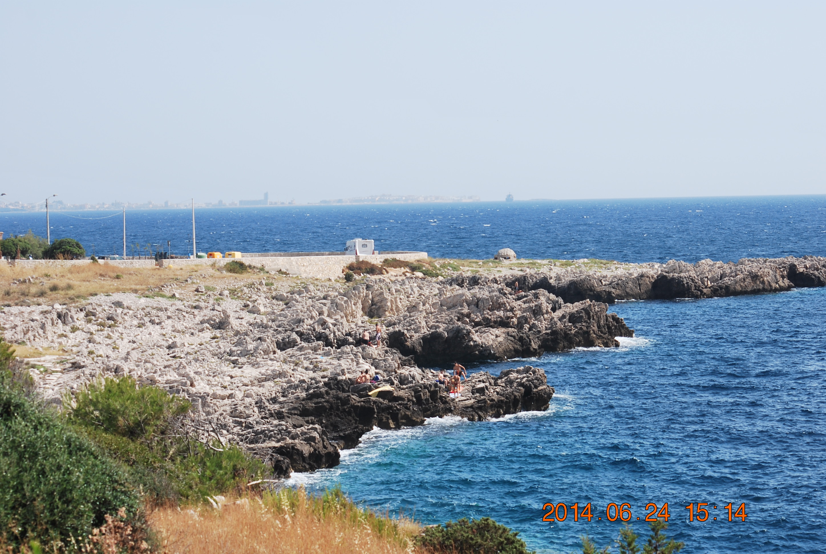 På hjemvei tok vi av fra fylkesveien etter Gallipoli. Vi ville kjøre etter kysten (og kanskje bade), passerte S. Maria al Bagno hvor noen badet, men det var ikke akkurat noen sandstrand å se.