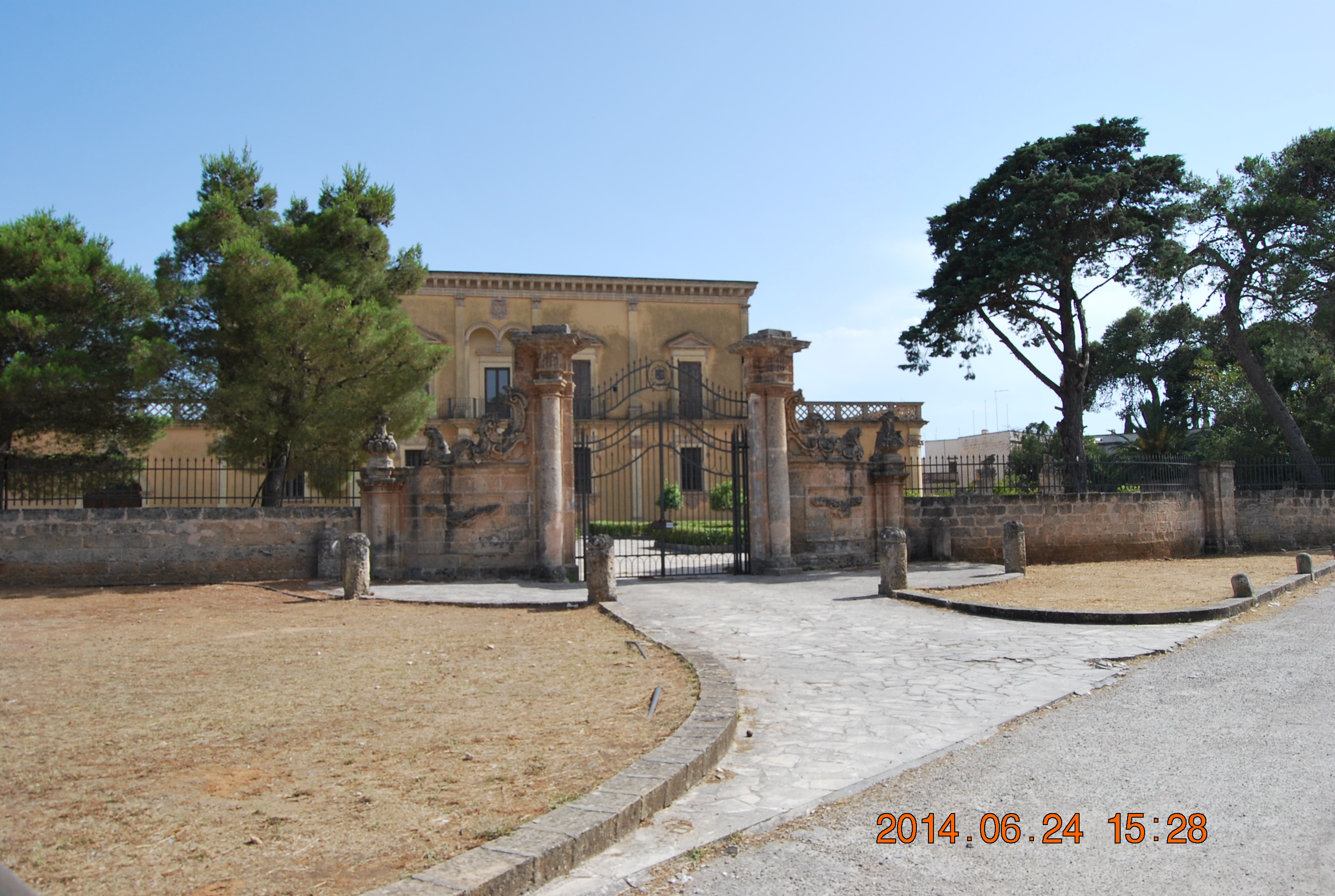 Veien førte oss forbi Sava til Manduria, som var en nokså stor by, hvor vi måtte kjøre rundt og gjennom og rundt…. trange, smale enveiskjørte bygater. En ny utfordring for Ivar, som han håndterte bra, og vel gjennom byen kom vi ut på smale øde landeveier, med massevis av vindrueranker og olivenmarker tilhørende store gods; Masserie Feudale. Vi stoppet ved en bensinstasjon midt ute på det øde landet, og fruktbare jordene, og fikk oss en (nydelig) espresso x 2 for € 1,40! – Og et ønske om Buona giornata (mens vi i vårt stille sinn lurte på om han mente det eller at vår siste dag var kommet)