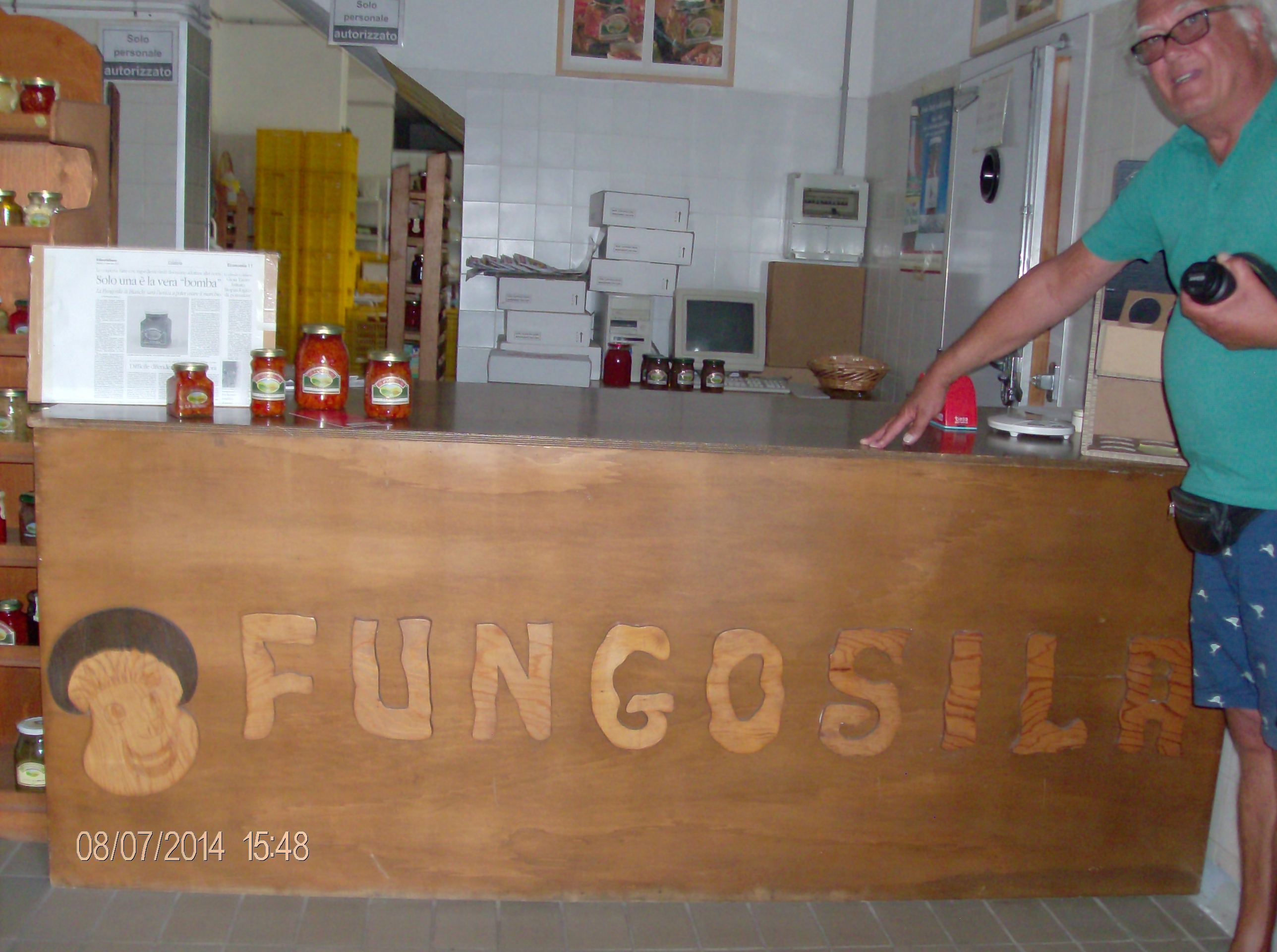 I dag skal vi på utflukt innover Sila-fjella for å finne landsbyen Bianchi, og kanskje finne fabrikken «Fungosila», hvor de produserer produkter som vi er så glad i. Fin dag for utflukt, delvis overskyet med mye vind. Vi spiste frokost og gjorde i stand medbragt lunsj. Kom oss avgårde kl.10.45. Vi kjørte sørover til Paola og tok av mot Cosenza. Bratte bakker og tuneller oppover, med kaffestopp ved en bensinstasjon utenfor en fjell-landsby, San Fili. Fra Cosenza kjørte vi Autostradaen sørover til Altilia, hvor vi kjørte av innover mot Sila-Piccolo. Bratte og svingete veier førte oss forbi små landsbyer innover i nasjonalparken. Midt inne i skogen så vi at vi var på rett vei: