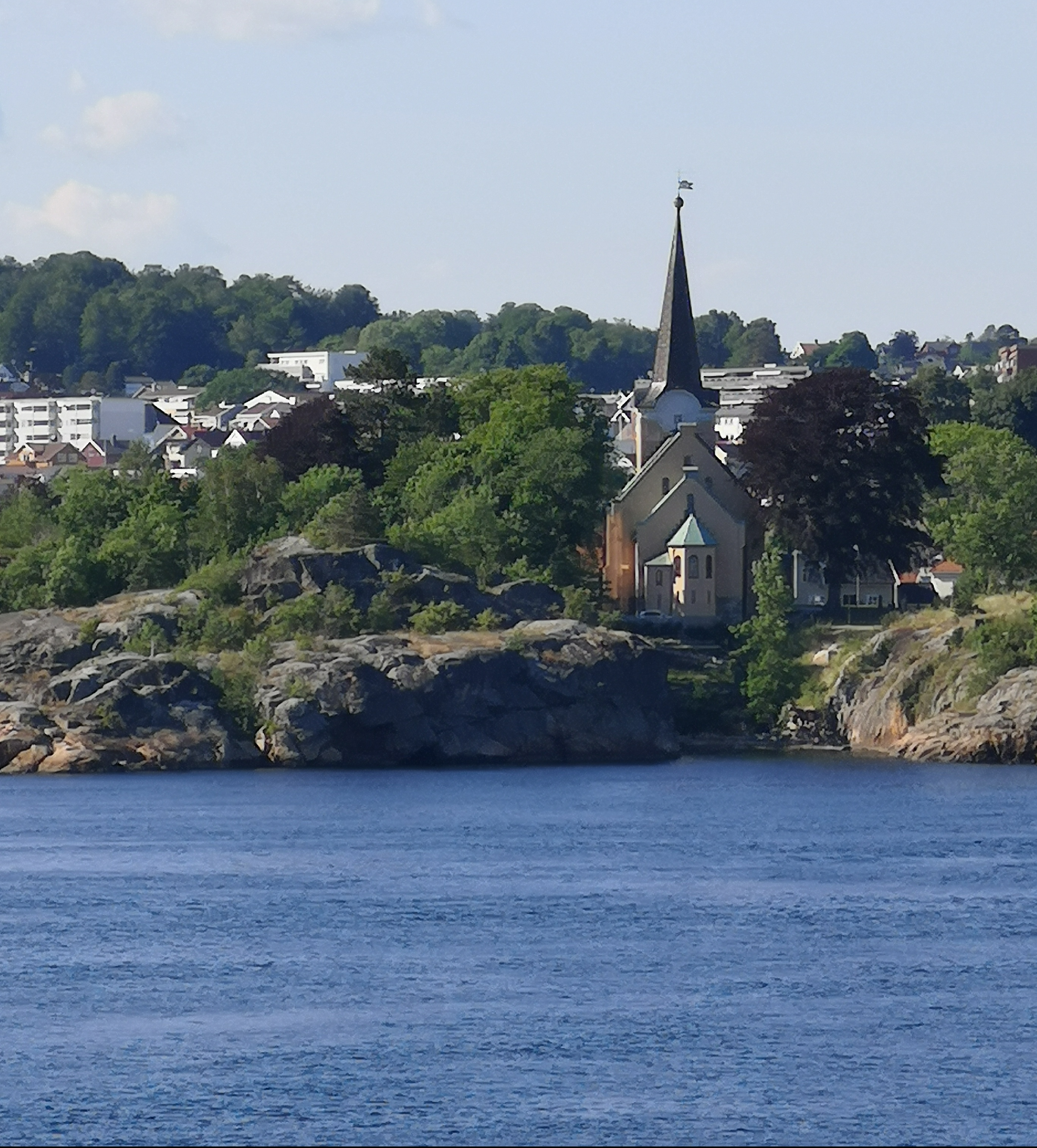 Vi dro fra Drammen kl. 05.45. Da var det 8°C. Båten gikk fra Larvik kl. 07.50, og vi fikk en fin overfart med sol og godt vær.