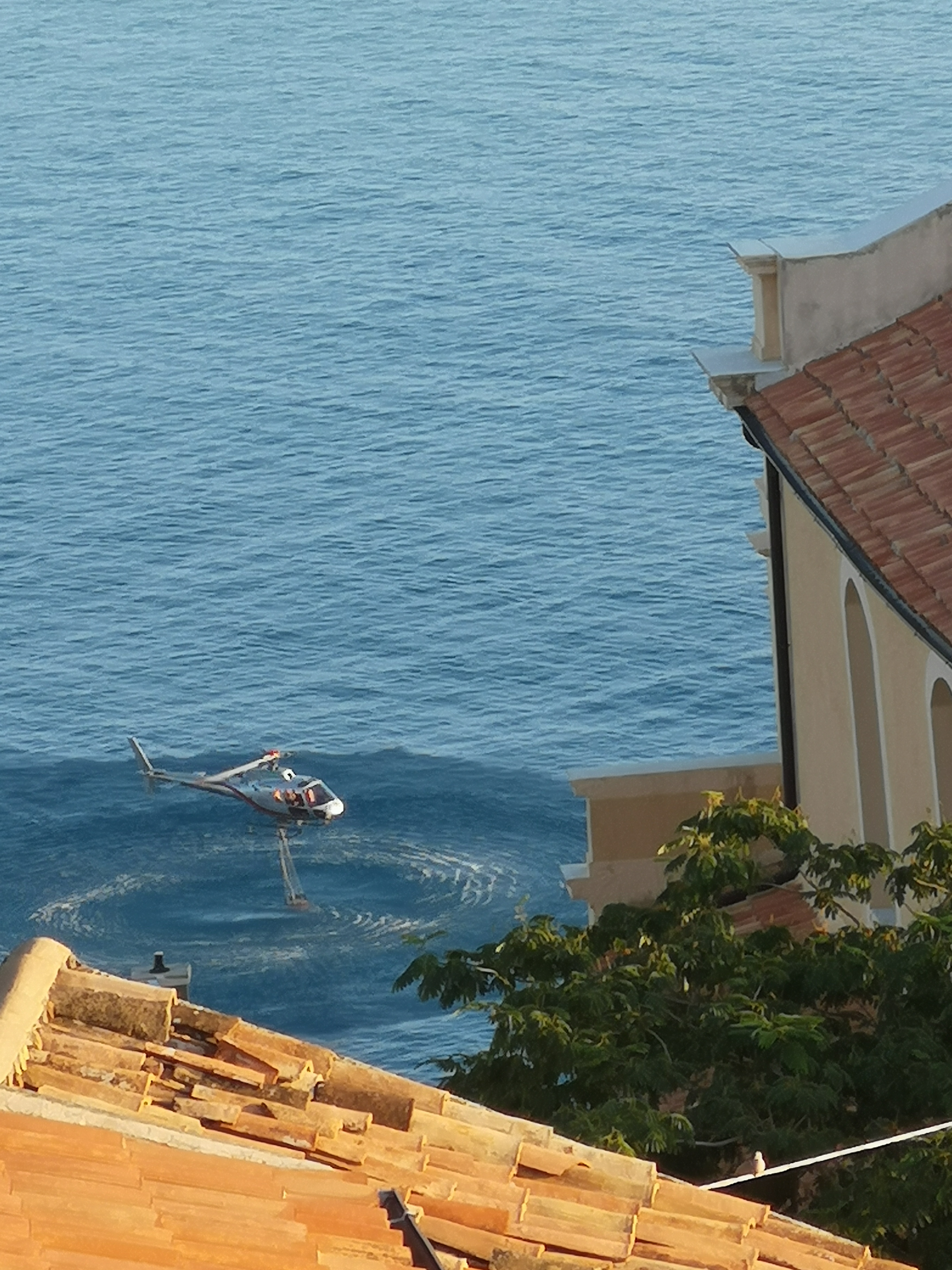 Litt dramatisk, men etter en del turer, fikk de slukket ilden, og helikopteret fløy tilbake innover fjella, sikkert til Cosenza.