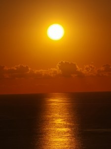 Satt på takterrassen og nippet til hvitvin, mens vi så på solnedgangen og etter hvert rødmen i vest. Skogbrann oppe i en av åsene rundt, vi så bare en voldsom røyk som sto til værs, og snart så vi brannbiler nede på veien. Helt normalt.
